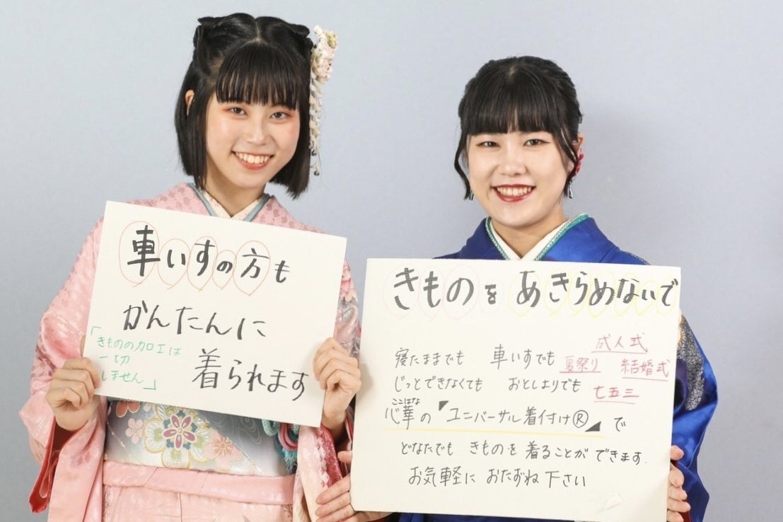 そしてこれが、㈱心華が提供する心華ユニバーサル着付け®の原点となりました。現在、支援学校に通う娘は着物を着るのが大好きです。着物を着たくても、諦めてしまう方がたくさんいらっしゃると思います。