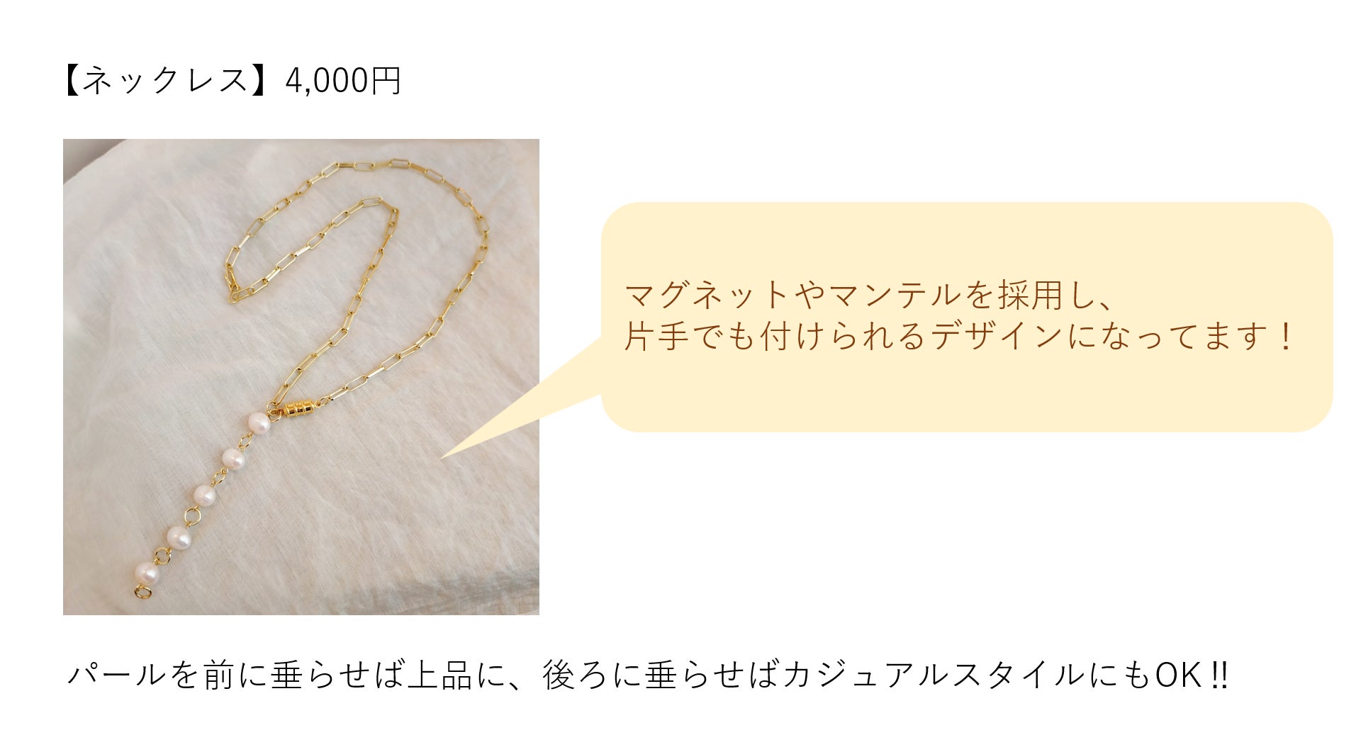 着脱方法の簡単さにフォーカスをあてたアクセサリーは少なく、誰もが簡単に使えるアクセサリーを作ろうとesporidge(エスポリッジ)を設立しようと思っています。