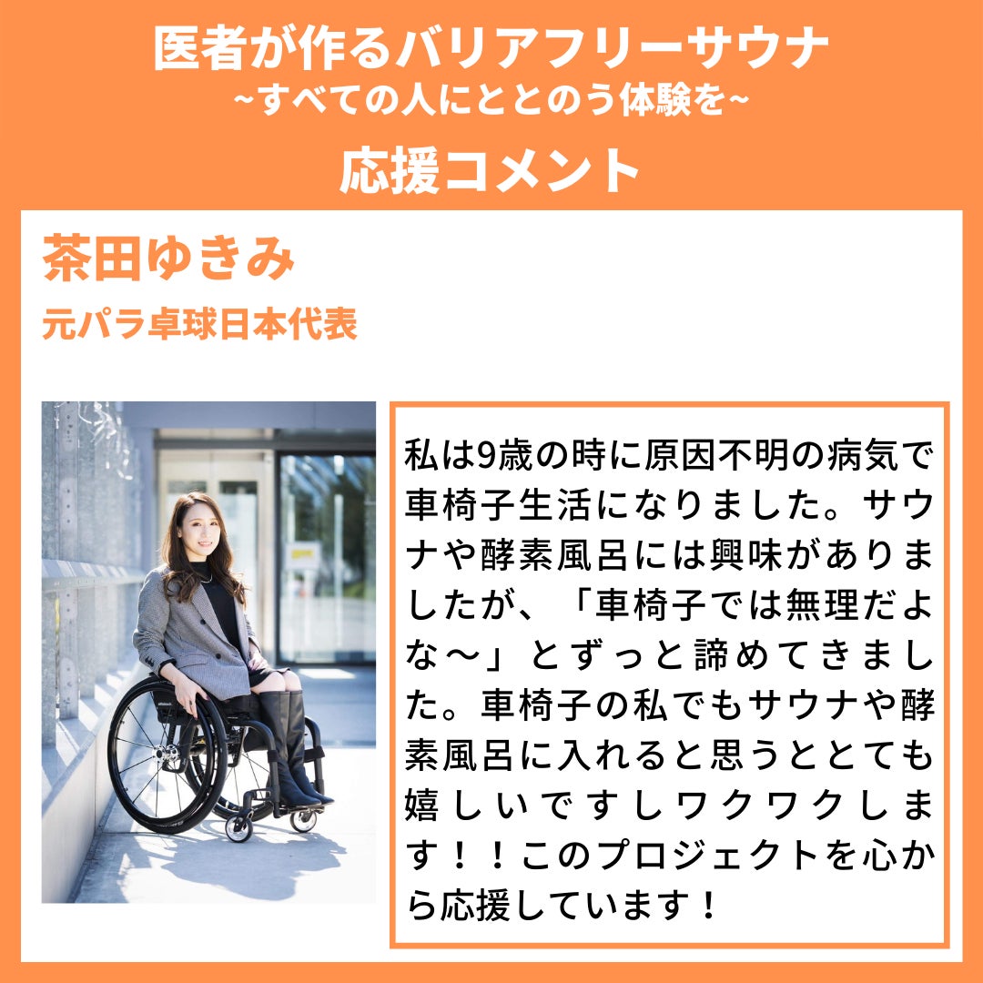 元パラ卓球日本代表の茶田ゆきみさまより応援メッセージをいただきました!
