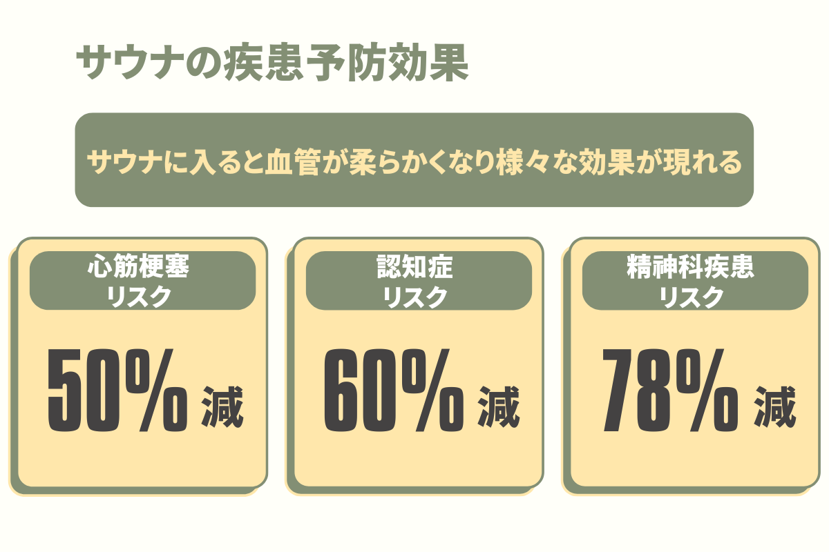 実際、すでにサウナには、さまざま疾患予防効果があることがわかっています。
