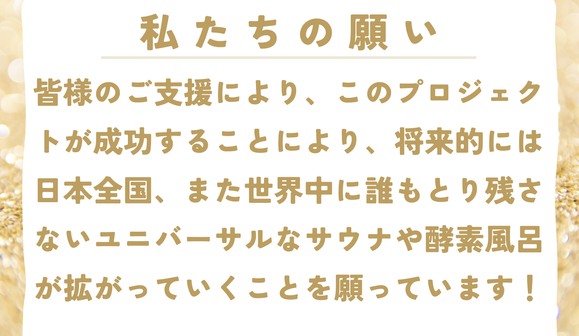 すべての人が安心して体験できる誰も取り残さないユニバーサルサウナの実現に向けて、ぜひ応援をよろしくお願いします!