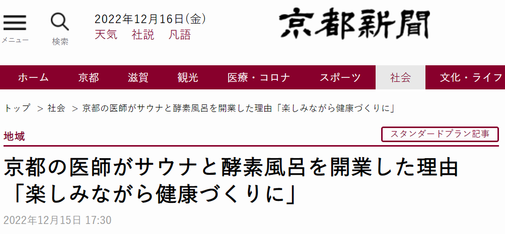 整形外科医が経営するサウナ施設は全国初の事だと思います。サウナ・酵素浴に予防医学の新たな可能性を感じています。