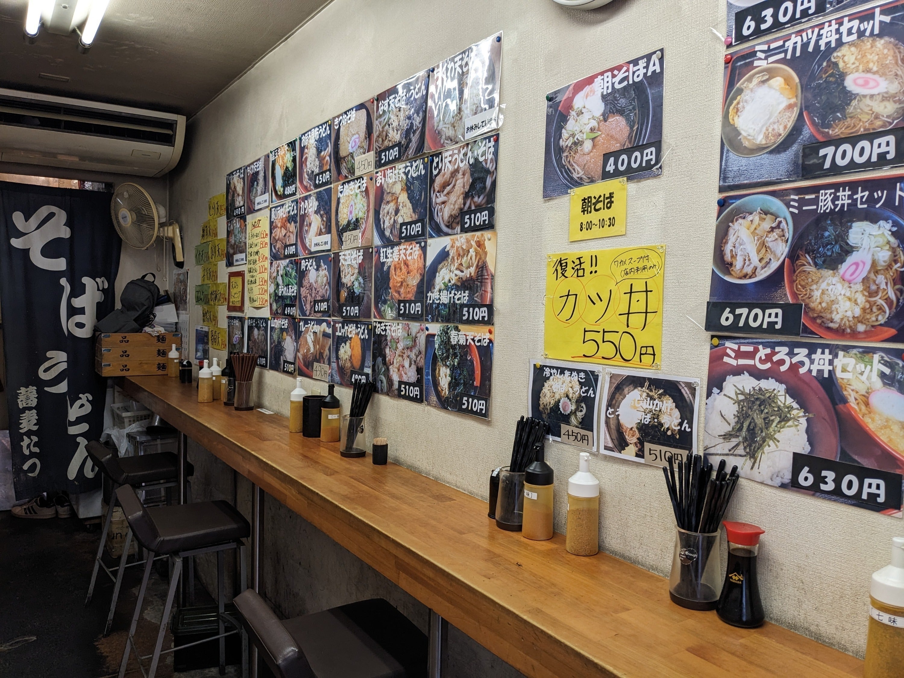 立ち食い蕎麦屋「蕎麦たつ 浜松町店」です。夫婦で始めたお店も今年2023年の9月で丸9年目になります。様々なお客様にご来店頂いていることを励みにオープン以来日々を積み重ねてきました。何よりコロナ禍中支えてくださった皆様には本当に感謝申し上げます。