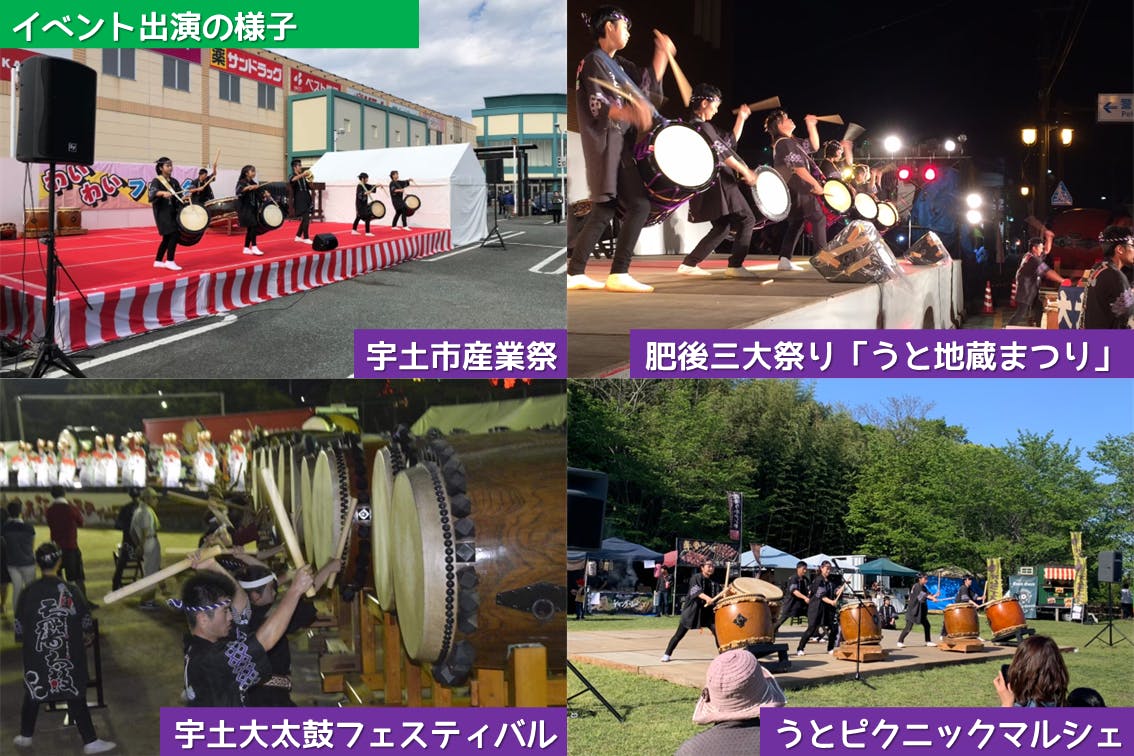 市内外の様々なイベントでの演奏などを通じて、宇土雨乞い大太鼓のPRを行っています。