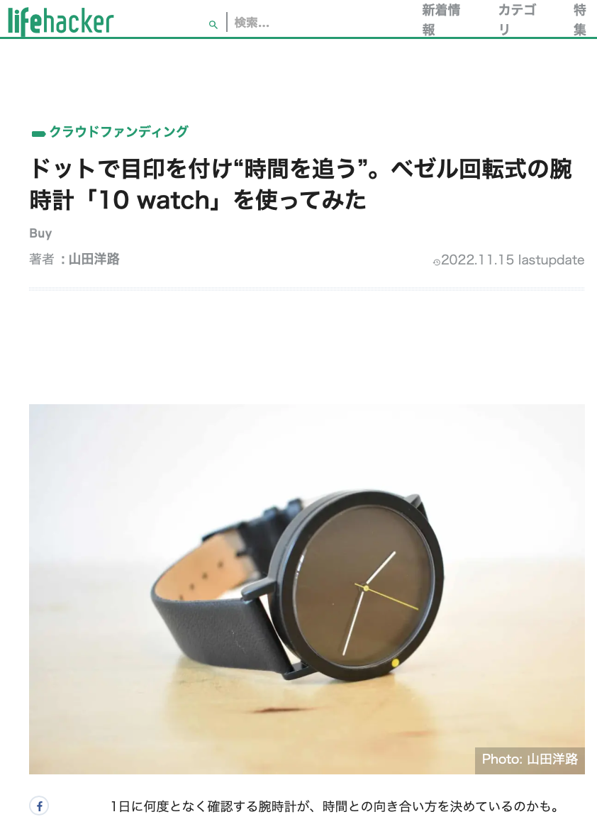 U+Oの活動レポートをいつもご覧いただきありがとうございます!今回の記事では、またお知らせをさせて頂きます!この度、再びあの【Lifehacker】様に「10 watch」を取り上げて頂きました!記事はこちらからご覧ください。今回は腕時計を実際に筆者の方に使用いただいて、記事にしていただいております。記事内では、情報過多で注意が分散しがちな現代人にとって、「10 watch」がどういったメリットをもたらすことができるのか、実際に使用していきながら、使用感と感想を筆者の方に語っていただいております。また記事内にご記載いただいておりますが、〈「10 watch」があれば、時間は追われるものから追うものにチェンジします。着用すれば、ほんとは必要ないたくさんの情報に、注意と時間を奪われていたことに気づくかもしれません。〉この部分がまさに、「10 watch」が現代人に問いかける、時間の優位性の部分であり、それについてわかりやすい言葉でご記載いただいているところです。是非皆様においても、レビュー記事を覗いていただけますと幸いでございます。引き続き、ご支援・応援のほど、何卒よろしくお願い申し上げます。U+O奥野