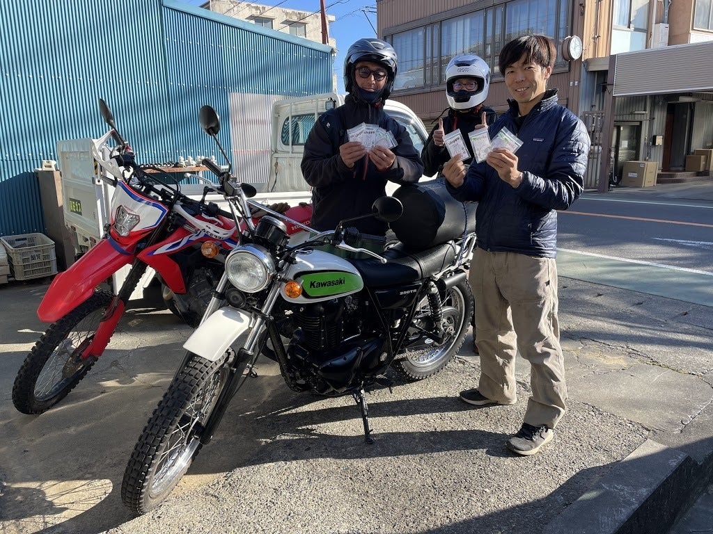 そのひとつであるsloppyの「バングル」を、作成者である亀田正人さんが、神奈川からバイクで届けてくれました。