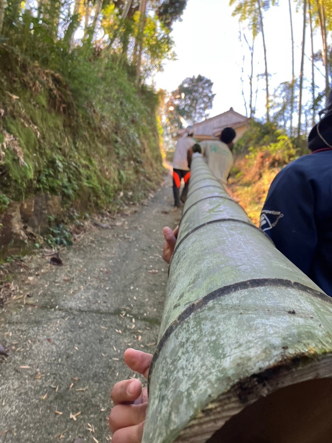 大泰寺の西側一帯は1haにも及ぶ竹林です。テントサウナをしている川原にも竹林を抜けていきます。随分ときれいになってきましたが、7年前は竹が伸びすぎていて、折れた竹が重なり、典型的な放置竹林になっていました。今、大泰寺では竹あかりの製作体験をできるようにしようとスタッフに研修をしてもらっています。竹あかりの材料とすることで、竹林の間伐ができて美しく、おいしいたけのこが取れる竹林を育てることができます。また、みんながサウナに行くときも、爽やかな竹が伸びる京都の嵐山のような竹林であれば、もっと気分が盛り上がるはずです。あるいは川原に竹燈りを並べて、美しい夜空を見ながら楽しむサウナもいいかもしれません。地方のお寺では、大きな森林をかかえていて、その整備のため収入のわりに支出が大きいお寺が多いです。知恵を使い、みんなに喜んでもらえいながら、持続可能な形が作れれば、みんなの遊び場、心のよりどころとしてのお寺を次世代に数多くつないでいくことができるはずです。皆様、あと10日ほどですが、どうかご支援お願いします。