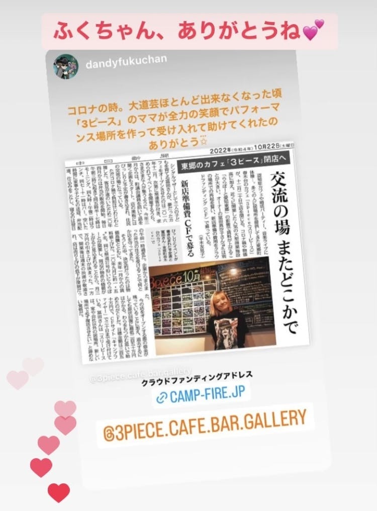ここで3pieceを終わらせたくない…これからまた皆さんが笑顔になれるお店として再スタートができますように
