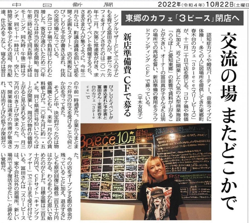 たくさんの方々に応援をいただきながら、中日新聞さんにも取り上げていただき応援を募っています。