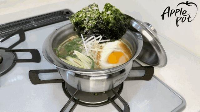 丸っと5層構造で鍋底から温められた熱が均一に側面と上部まで伝わり効率よく調理ができるのがアップルポットの魅力です。