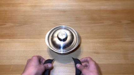 1.鍋とフタについた製造過程で付着した不純物を取り除くためにもう一度鍋の中と外をキッチンタオルに食用油をつけ拭きあげる。