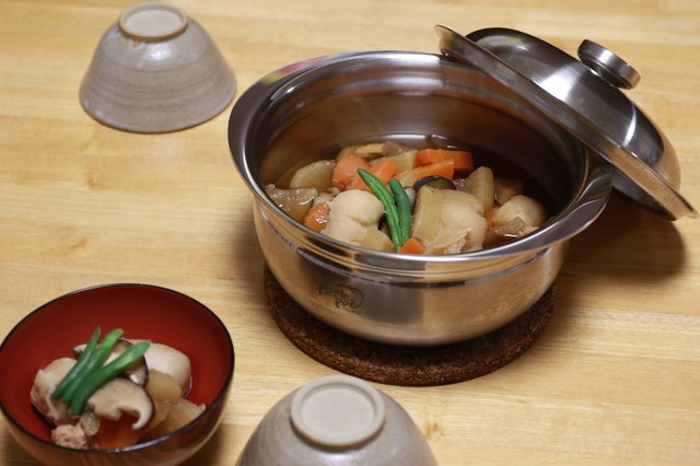 一度温まると底面からの熱が側面までほぼ同一に伝わり、弱火や中火でも十分に調理が可能な省エネ効果もある多用途鍋です。