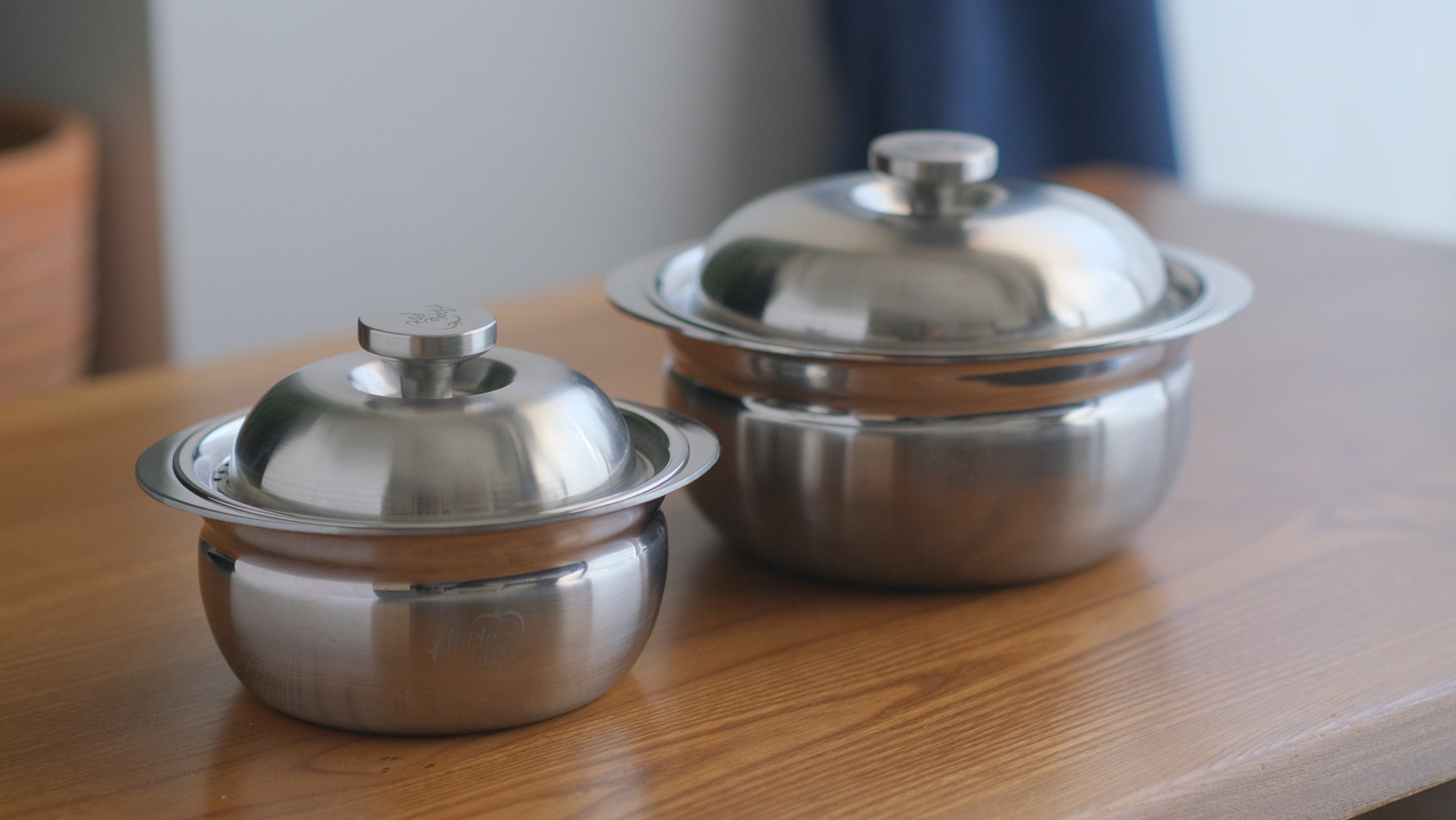 アップルポットはこの「トゥッペギ」の長所をステンレスの長所に詰込み可愛いさを加えました。