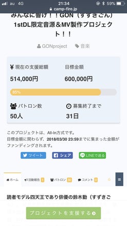 クラウドファンディングクリアしました。ありがとうございます。50日間の戦いでしたけど 早めにクリア出来てメンタル的にも安定しました。 クリアしづらいはしづらいで なんかキャンペーンとかやって頑張れるんですが そんなガツガツして 金を毟り取り 人に物乞いをする様なやり方は このプロジェクトではやりたくなかったので とても嬉しいです。僕が 小学生 中学生の時 どんな好きなアーティストでも CDを買うのは一枚や二枚でした。時代やフィールドのせいにして 少しそれを忘れて ただ数字に囚われる様な事はもうしたくありません。適材適数。そしてきちんと 多くの人に必要とされる そんな事をクラウドファンディングは可能にしてくれたと思います。本当ありがとう。 アルバム制作まで頑張ります。のし