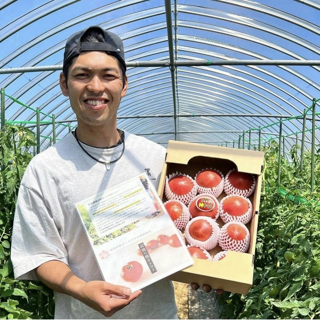 Sさんは他にはない野菜の甘味に定評のある農家さん。その秘密は畑の海化にあります。特に評判のトマトは、特別に加工業者と契約し、ホタテの貝殻を破砕。土に混ぜ栽培しています。散水には、海藻の成分を溶かした海藻水を使用。その日の湿度や温度、トマトの状態をみて海藻水の濃度や散水頻度を決定しています。極限まで水やりを絞ったトマトは、海の栄養が凝縮し糖度が高く味が濃いと評判です。経験と工夫により誕生した唯一無二の野菜を皆さんにお届けします。
