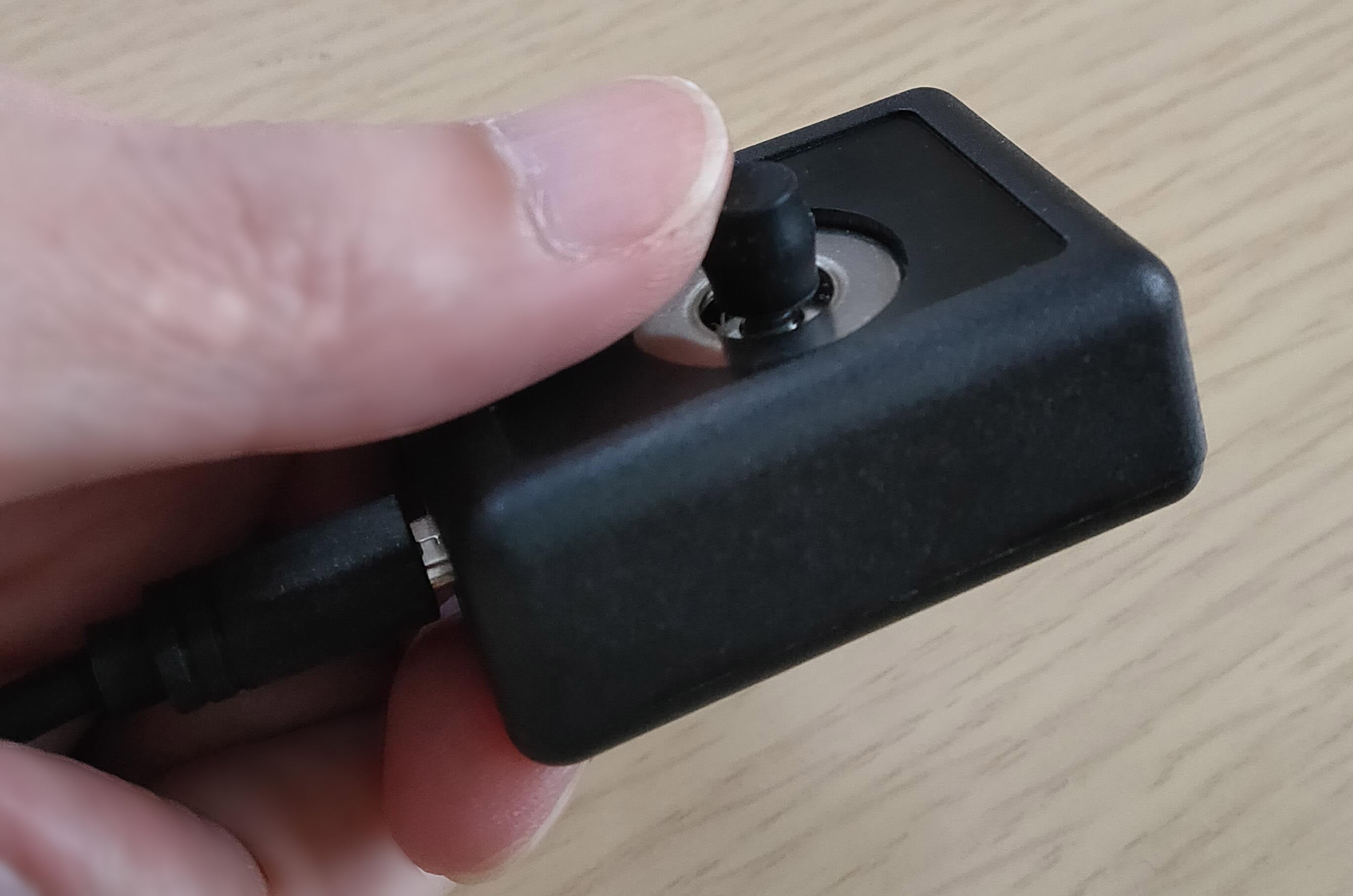 ジョイスティック構造はスイッチ式となっており、僅かに軸を傾斜(角度は約10度)させると控えめなコトコトとした感触の4方向(斜めを入れると8方向)でクリック感があります。上から押すプッシュ操作でクリック感があります。