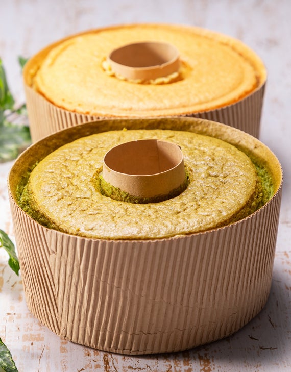 第一弾プレーンに続く、完成したばかりの「抹茶のしあわせシフォンケーキ」。