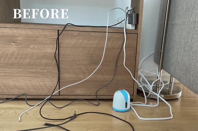 リビングに家電のコードがそのままあると、お子さんや高齢者のつまずきが心配です。また、ペットがいたずらをしてしまうことも……。