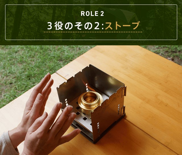 付属のアルコールバーナーを【卓火 TAKUBI】にセットすれば、卓上ですぐに暖まれるストーブとして使用が可能です。(市販の固形燃料等でもOK)