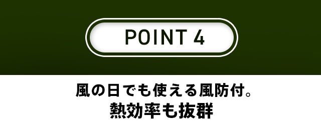 【卓火 TAKUBI】は三方向の側面が風防となって、風が強い日でも風の影響を受けにくく調理がしやすくなります。