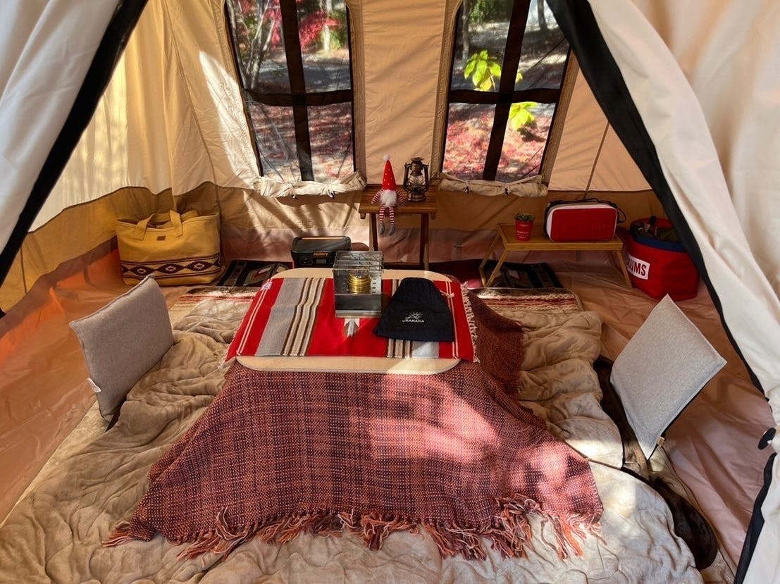 寒くなったらテントの中にコタツをつくられる方も多いですね。