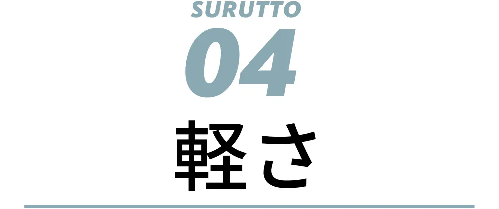 従来品は貼り底がある分、重くなりやすかったのに対し、特殊底面加工で貼り底を無くしたSURUTTOは、その分、軽量化に成功しました。