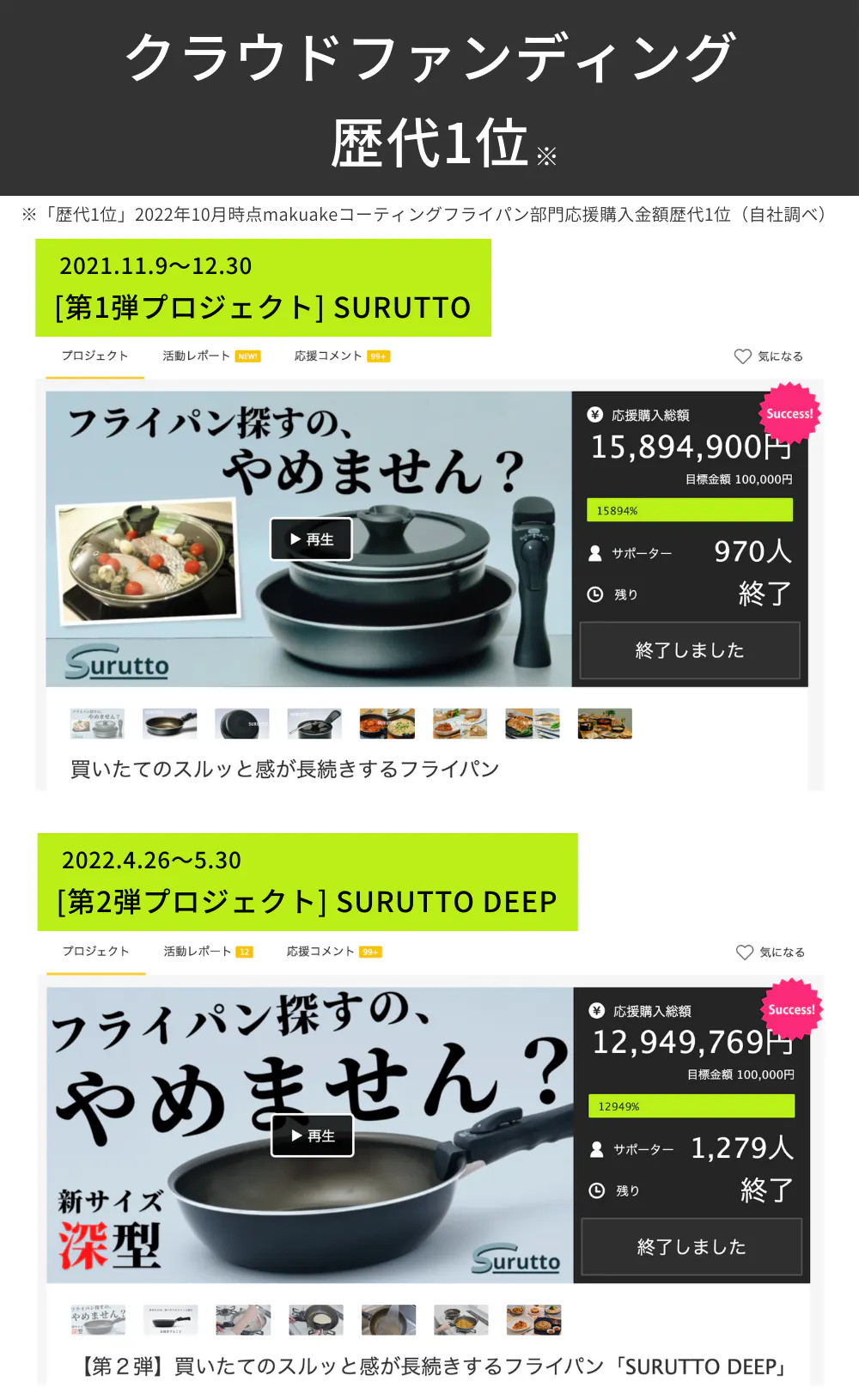 ※WellFron®スピンコーティングはフッ素塗膜加工の1種です。強火や空焚きの禁止などいくつかの注意事項があります。正しい使い方はこちらに詳しくまとめてあります。サポーターの皆さまに、より長持ちを実感していただきたいので、よかったらご覧ください。