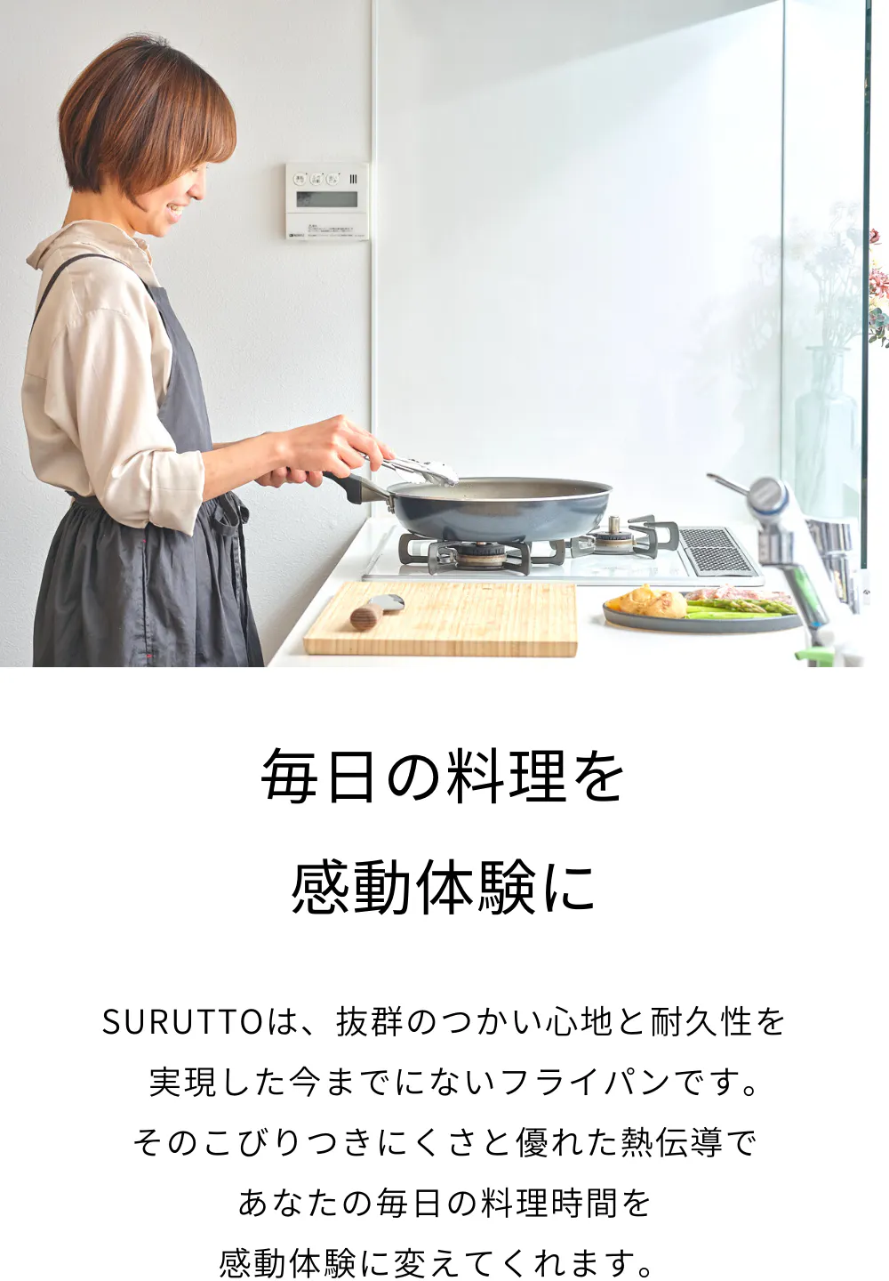 SURUTTOは料理初心者の方から上級者の方まで、たくさんの方の料理ライフが、「少しでも快適かつ楽しくなってくれたらいいな」という願いを込めて開発いたしました。
