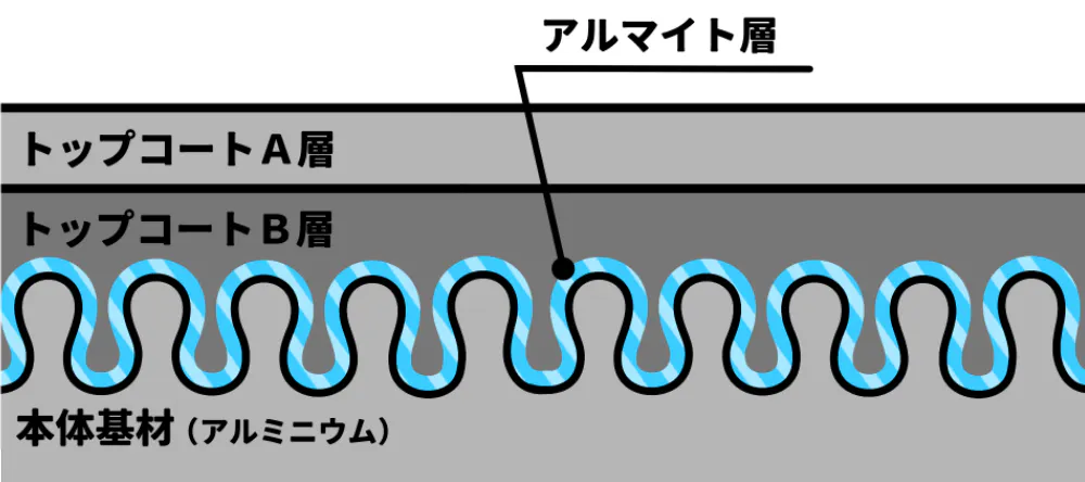 ・アルマイト層が塩分の侵入を防ぎ、本体基材の腐食を防ぐ