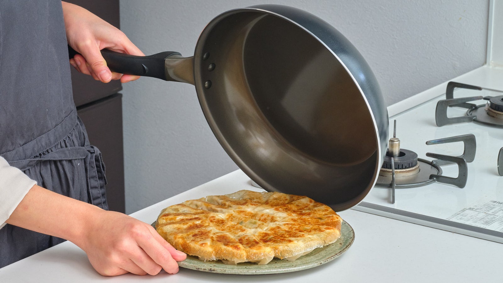 お魚や餃子など、くっつきやすい料理もツルツルの表面のおかげで、スルッと剥がれてキレイな焼き目に。(※取っ手つき・取っ手がとれるシリーズとも、同じ内面加工を使用)