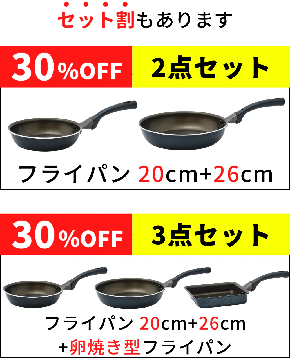※フライパンを重ねる際は布等を挟むようにしてください。