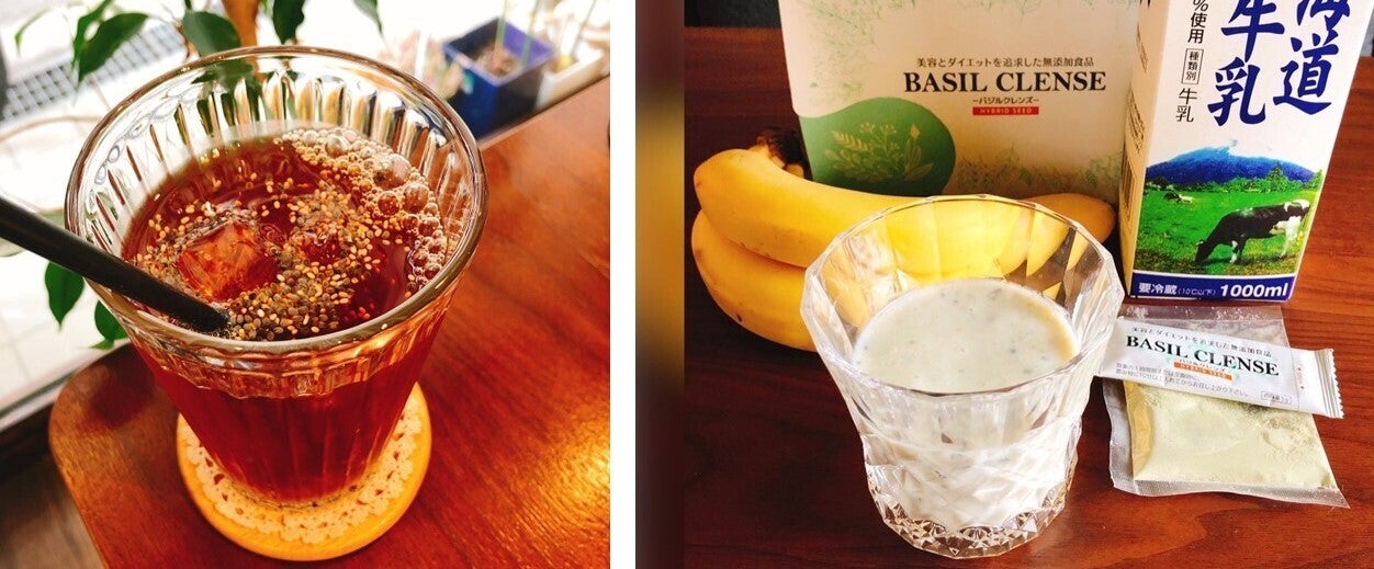チアシードとバジルシードの「満腹感」を借りて、いつもの食事量を少し控えめにするのが、お腹ぽっこりを解消する「バジルクレンズ」ダイエットのポイントです。