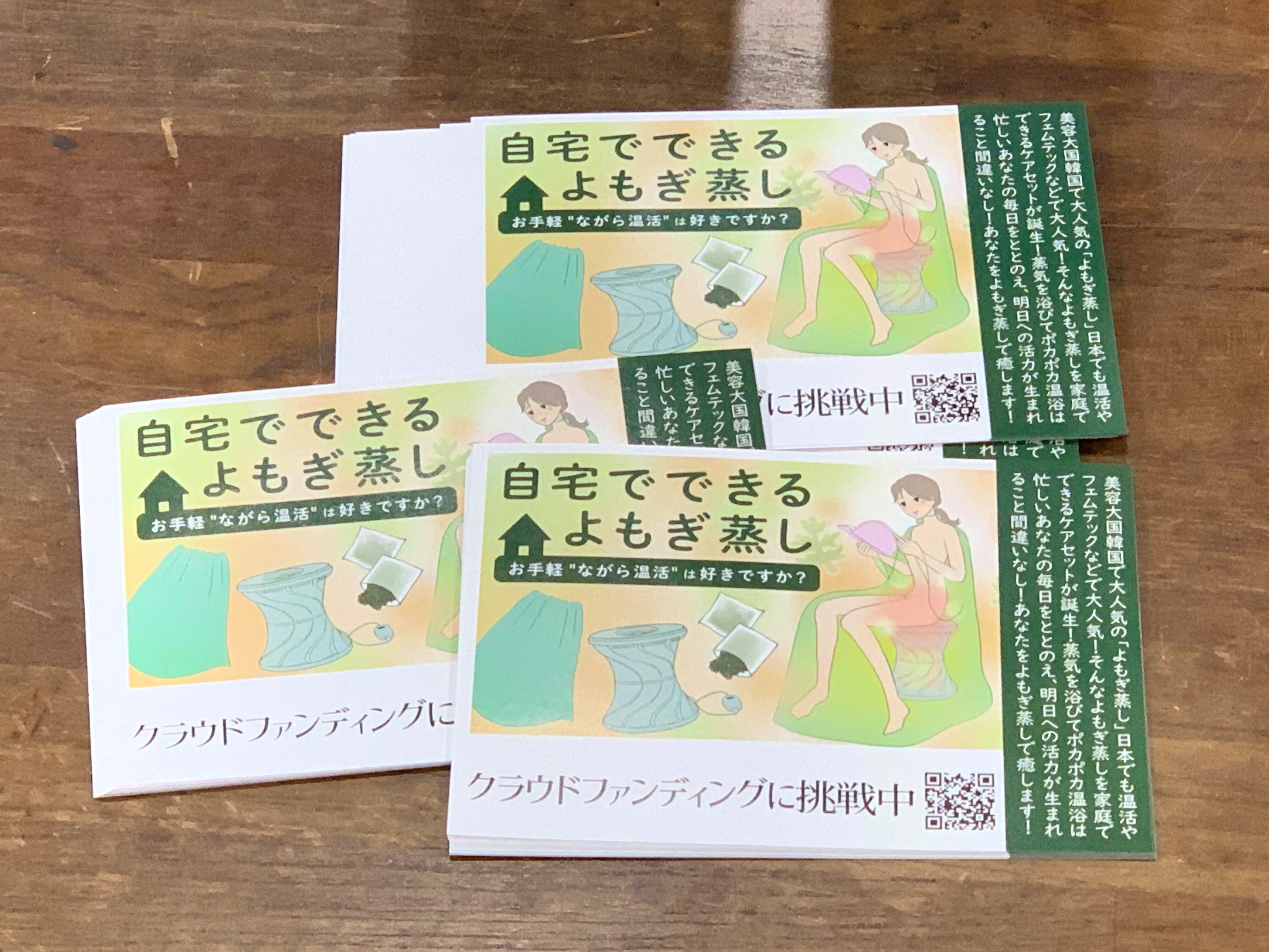 この度、「予約もメイクも必要なし!心と身体をととのえるよもぎ蒸しケアセットを届けたい!」クラウドファンディングのチラシをご提供いただきました!!