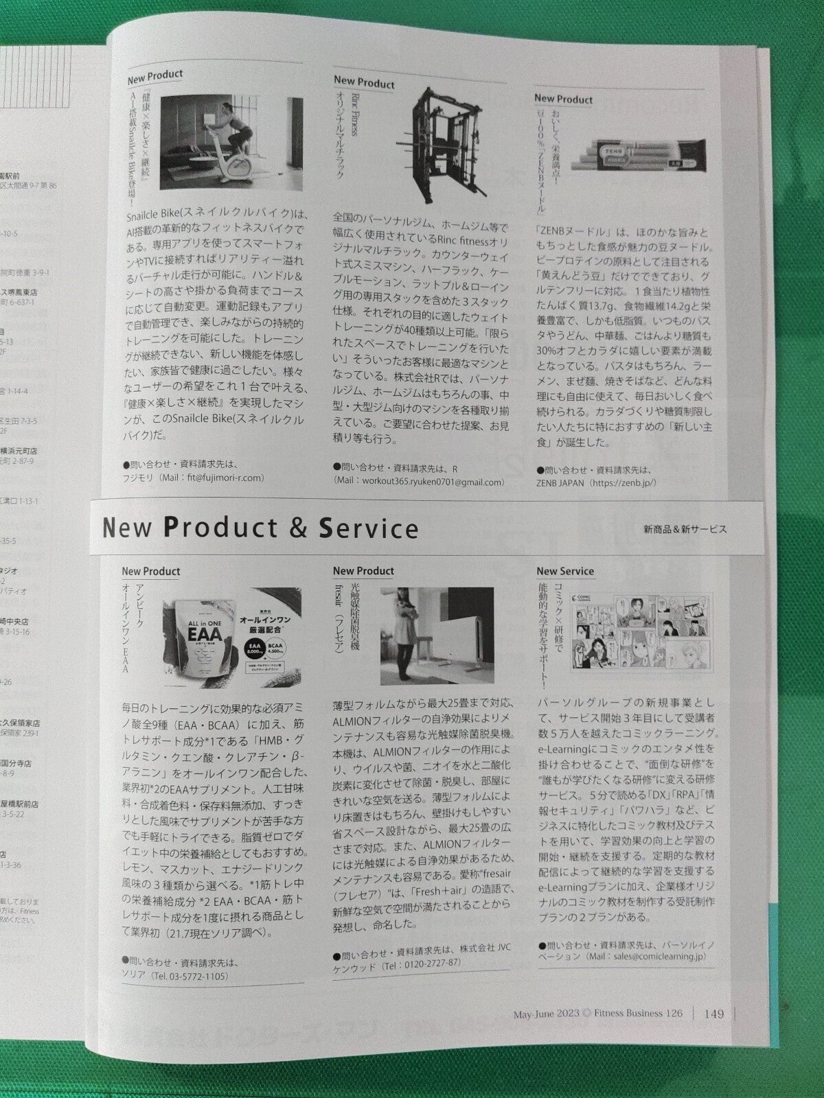 今回は、フィットネス業界唯一の経営情報誌『FitnessBusiness』(©2015-2023 Club Business Japan. FitnessBusiness 126号)にSnailcle Bikeを掲載いただきましたので、ご報告致します。