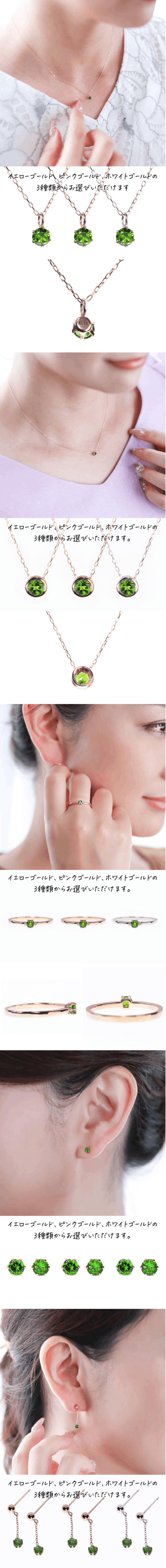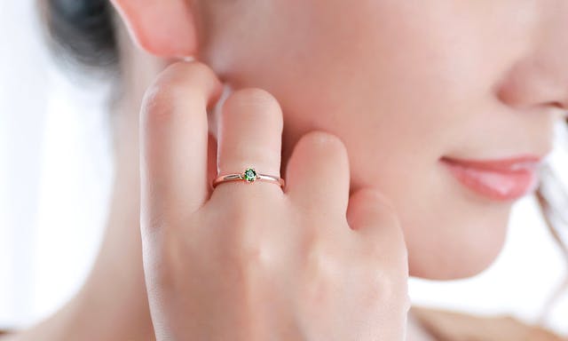 クロムダイオプサイトは年代問わず身につけられる宝石で、重ね付けはもちろん、そのシンプルな美しさがシーンを選びません。