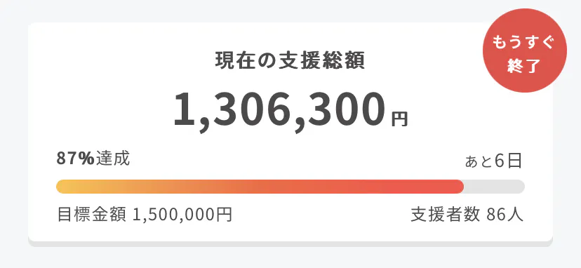 あと6日…目標額達成まで決して気は抜けません。