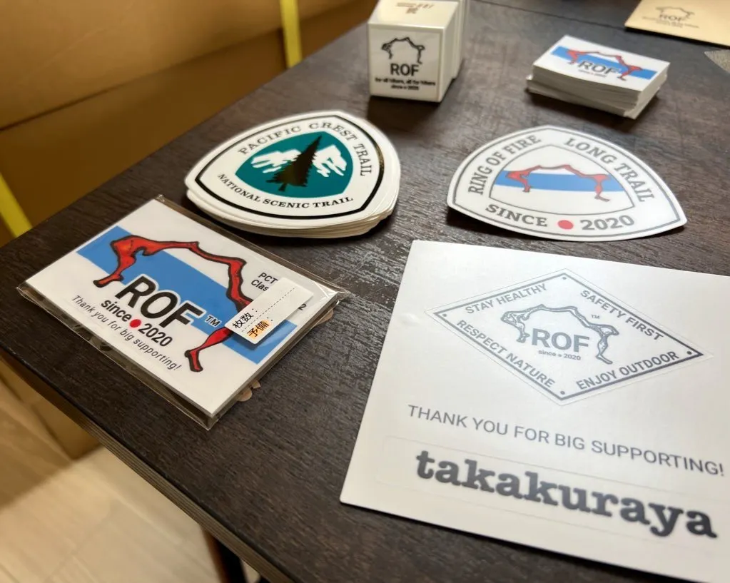 菱形のステッカーの下部には“takakuraya”のステッカーをおまけでつけてみました。今まで通り耐水耐候のアウトドア仕様になりますので車にも貼っていただけます。