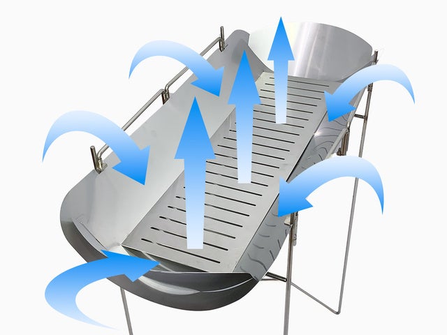 AIR GRILLの壁面は、緩やかな曲面で出来ているため空気が回り込みやすく、炭の燃焼を促進させます。