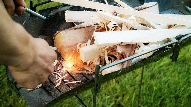 ハイスタイルの焚き火は、火に近くまで寄りやすい長所があります。また地面から充分な高さがあるので、スパッタシートがなくても地面への熱ダメージの心配がありません。