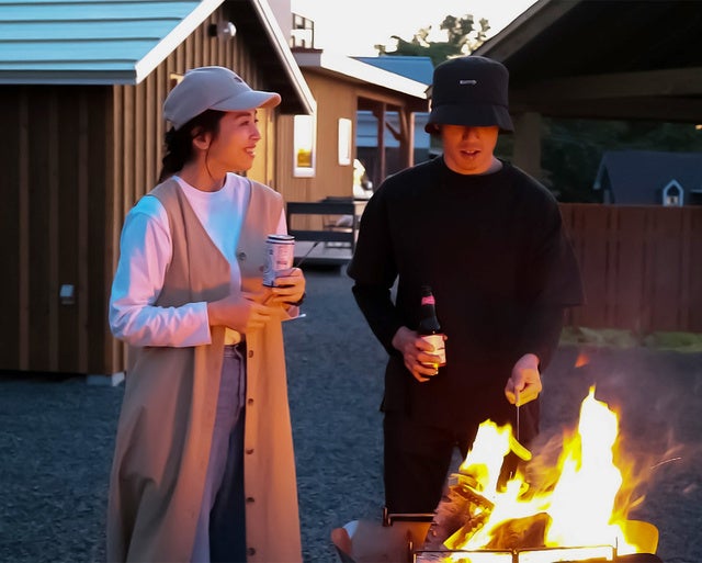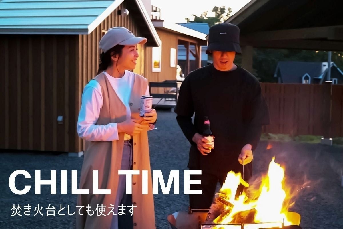 煙が広がる位置が人よりも高いので、あまり煙たくないのもポイントです 。マシュマロやドリンクを片手に、癒しの焚き火タイムをお楽しみください。スタンティングスタイルだと、いつもより会話も弾むかも…?
