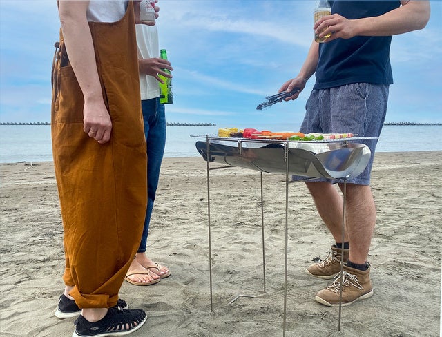 砂浜まで簡単に持ち運んで、バーベキューを楽しむことができます。