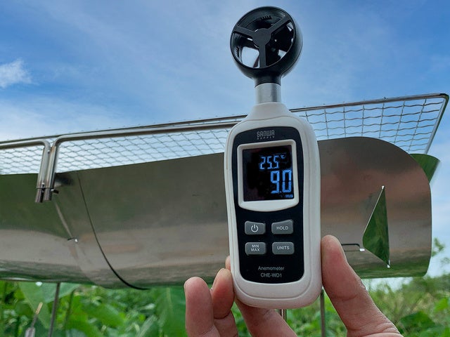 グリルが空の状態で風速9m/sの横風を受けても、流線形のボディが風を受け流し、転倒することはありません。風速9m/sとはテントやタープの設営が困難なほどの風速ですので、通常の使用シーンでは風による転倒の心配は無用です。