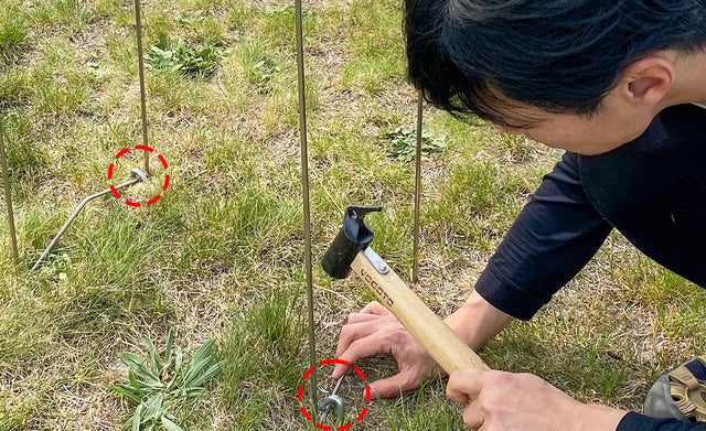 地面が傾斜していたり、子供が走り回るのが心配な時は、ペグを使って簡単にAIR GRILLを固定ができます。一般的なBBQグリルよりも安定性は高まります。