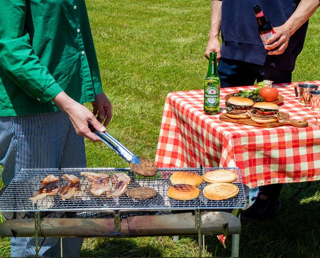 広い焼き面積を使ってハンバーガーなど自由で楽しいキャンプ料理をお楽しみください。