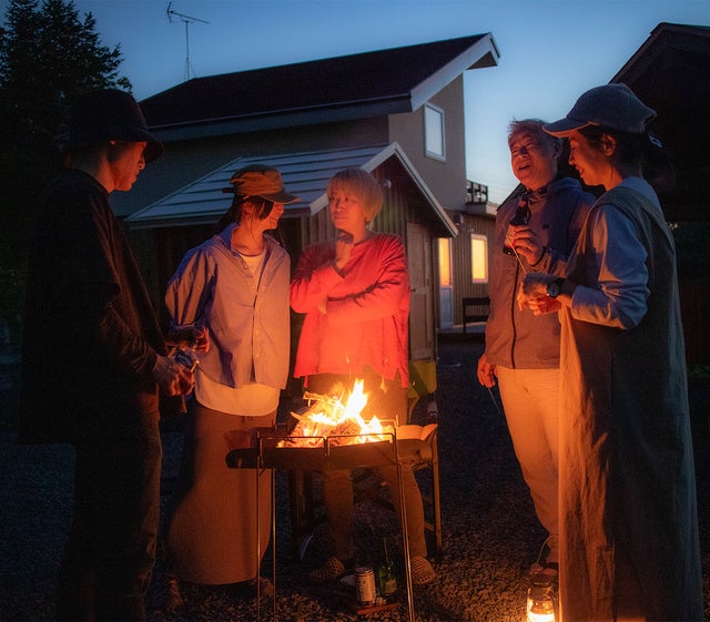 ハイスタイルの焚き火は、仲間が気軽に集まりやすく、自然と会話が弾みます。ガーデンパーティーにもぴったりです。