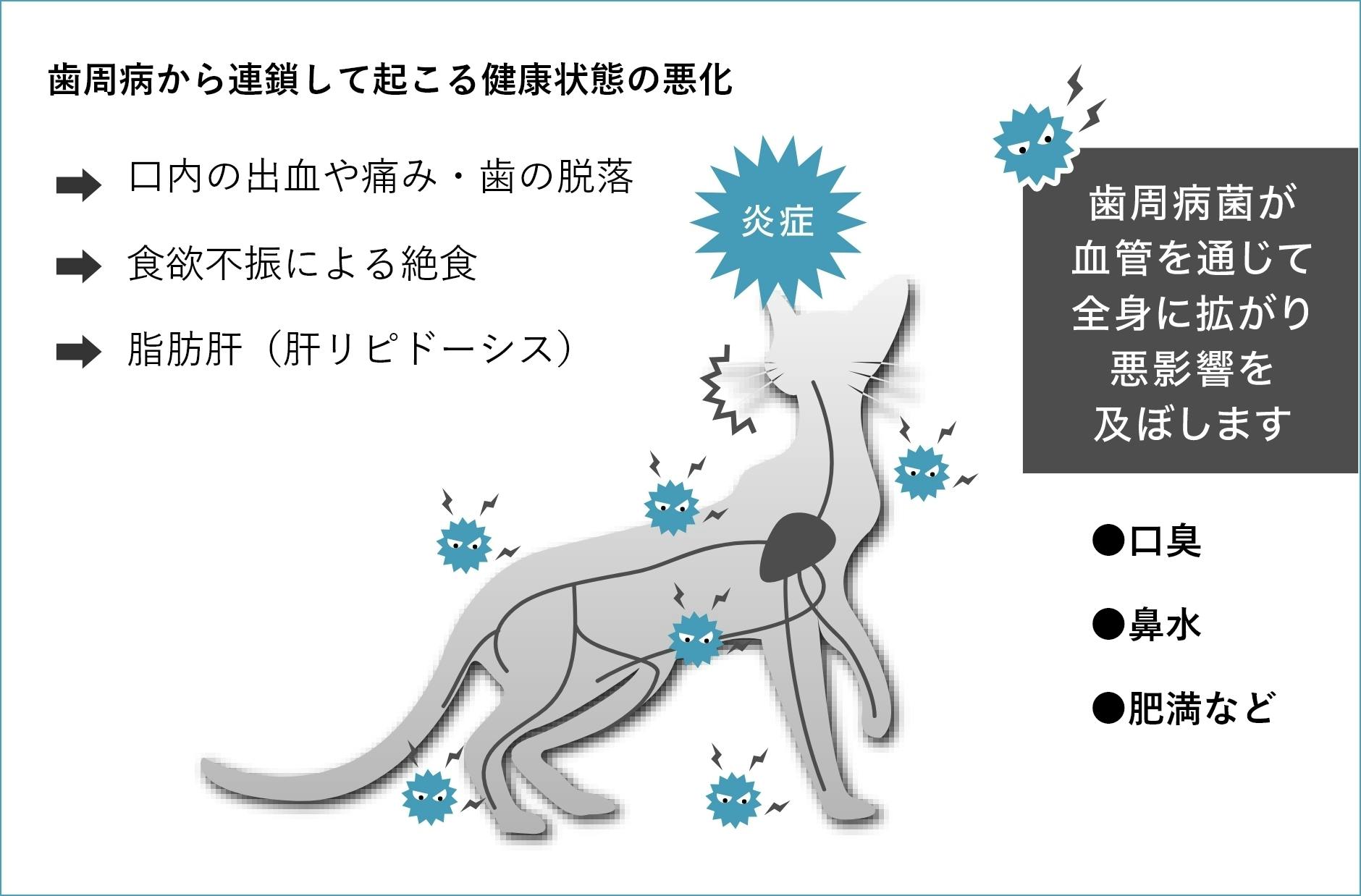 歯周病は3歳以上の犬猫の約8割にみられるといわれますが、ペットのお口トラブルは、人よりも放置されがち。飼い主さんが見て気付くほどの頃にはかなり進行しています。