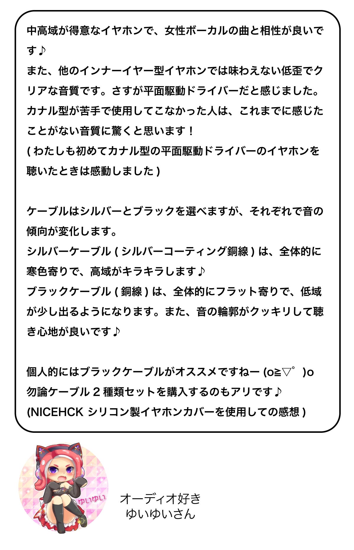 ・Initial Acoustic [IA-PL1-YUI] 結 (ゆい)の音質について