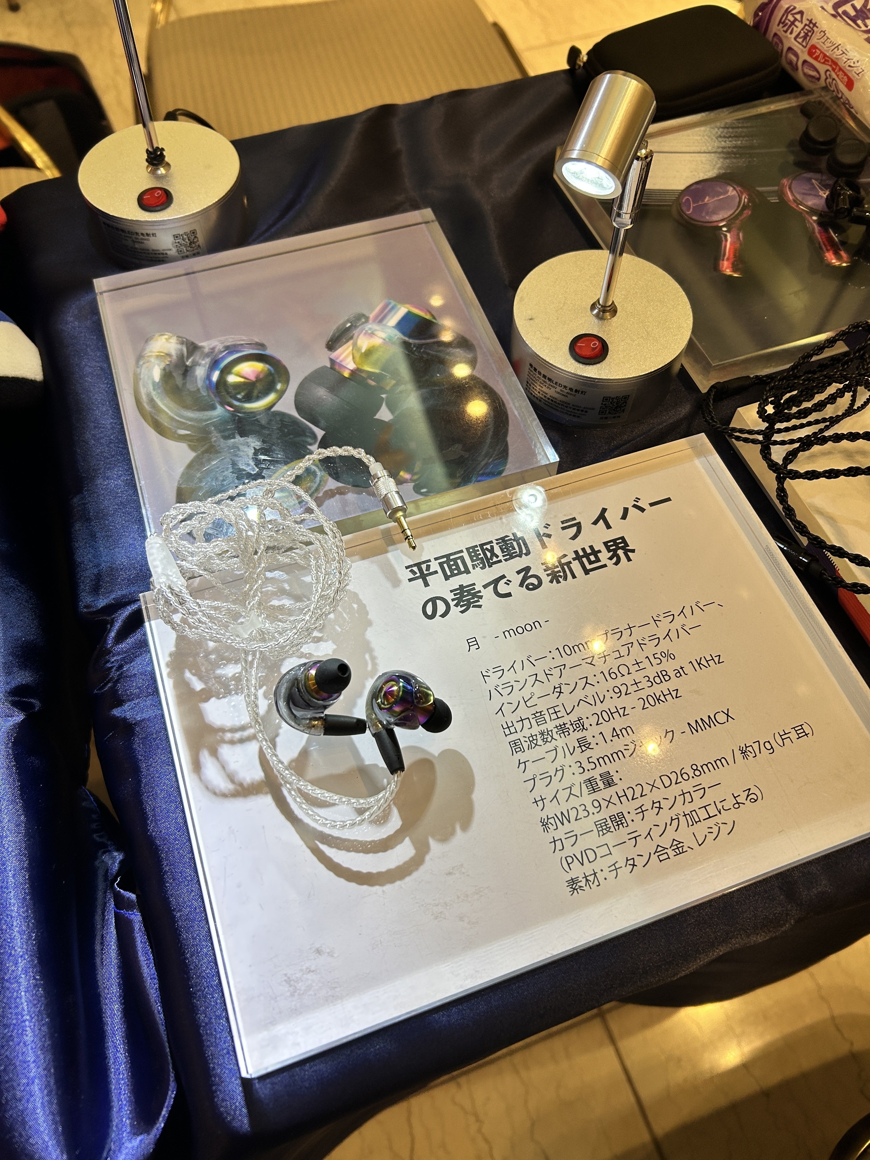 現在キャンプファイヤー中のイヤホン「月」も展示していますので、ぜひお近くにお越しの際はお立ち寄りください。