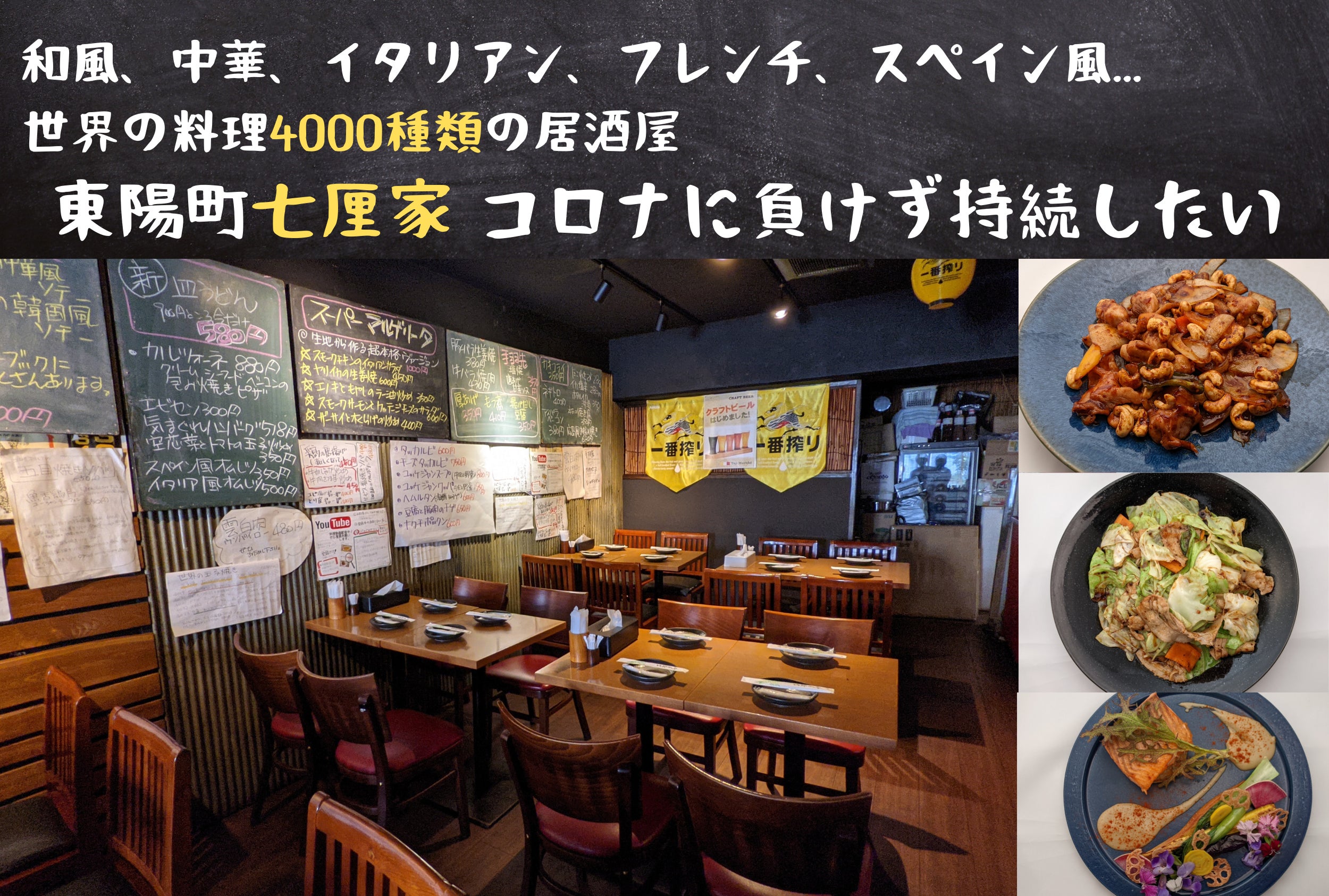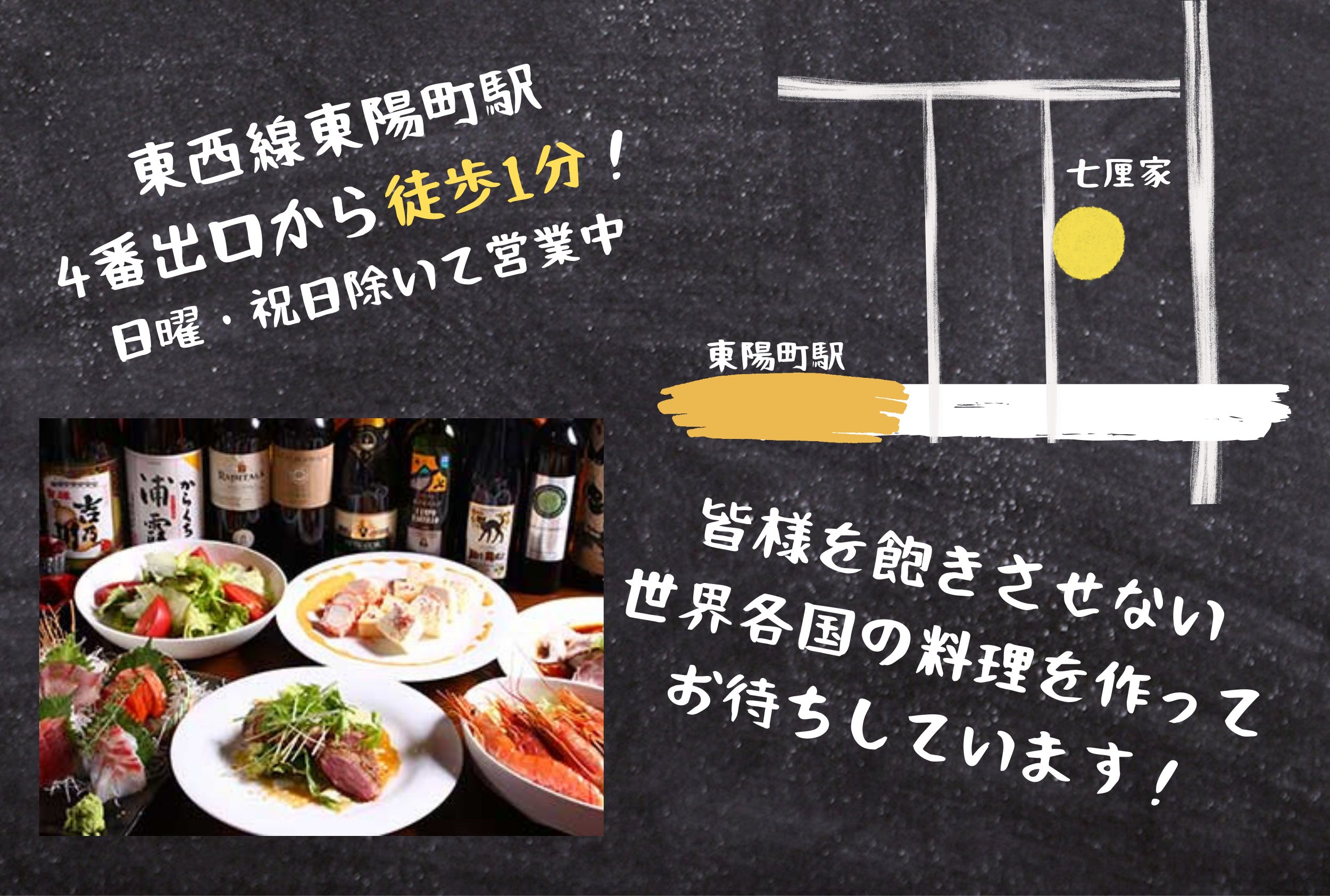 フードメニュー4,000種類超え、東陽町駅より徒歩1分の「七厘家」と申します