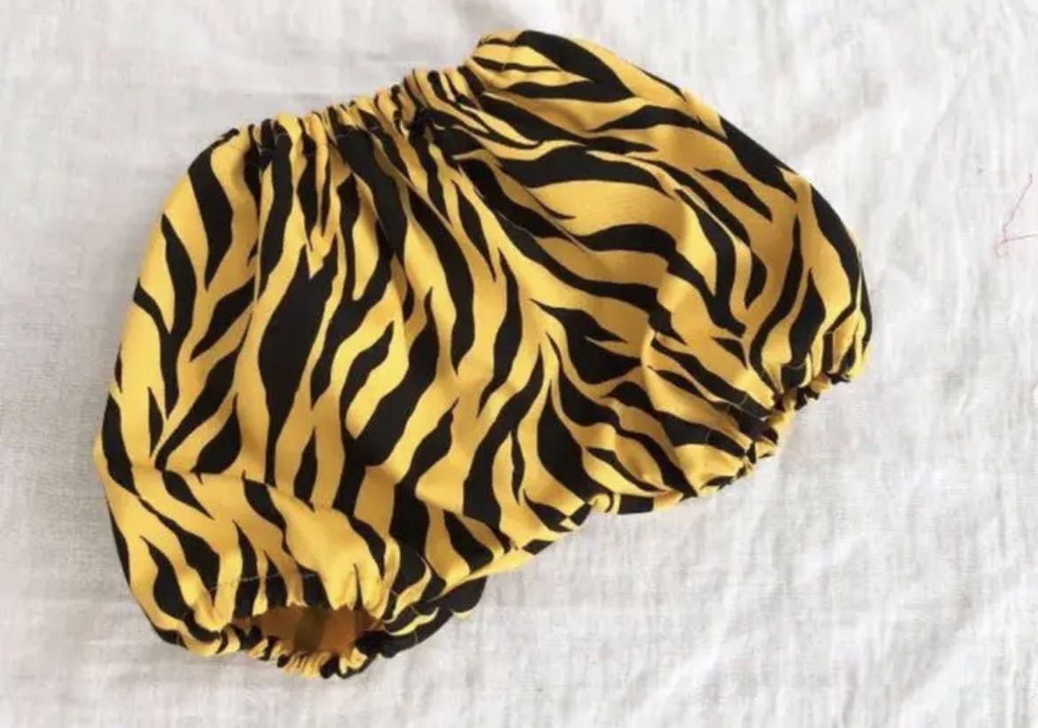 リターンとしては今回作成するトラ柄のかぼちゃパンツ(ベビー80-90cm)1枚、
